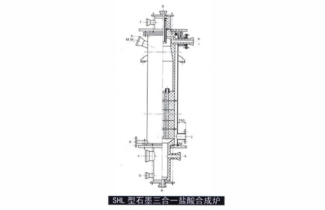 由鋼殼與石墨爐蓋、合成筒和爐底組成,與鋼合成爐相比有以下特點:1、使用壽命長(一般在10年以上);2、產品酸純度高3、可簡化生產流程;4、生產能力大(同體積相比)5、勞動條件、控制和管理方便技術特性:許用壓力:<0.12MPa出口溫度:<350℃冷卻水:常溫、常壓