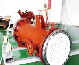 醛化液中含芒硝等物質,其滲透性特別強,容易結晶,還具有強腐蝕性。普通石墨設備用作醛化液加熱極易發生堵塞、滲漏等問題,使用壽命極短。本公司解決了上述難題,研制成功了醛化液專用加熱器,在四川、福建、安徽等大型化工企業使用,效果良好,獲得好評。本公司在本型設備之特殊密封結構及材料、設備結構強度及介質通流渠道設計等方面具有技術知識產權。